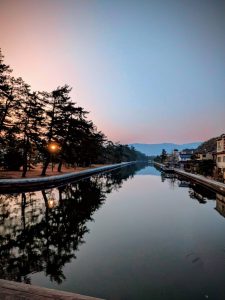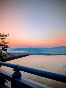 お休みの日は早朝は走るんですが、まだ日が昇りきる前に家を出て天橋立の松並木を、海を横目に見ながら走ります。