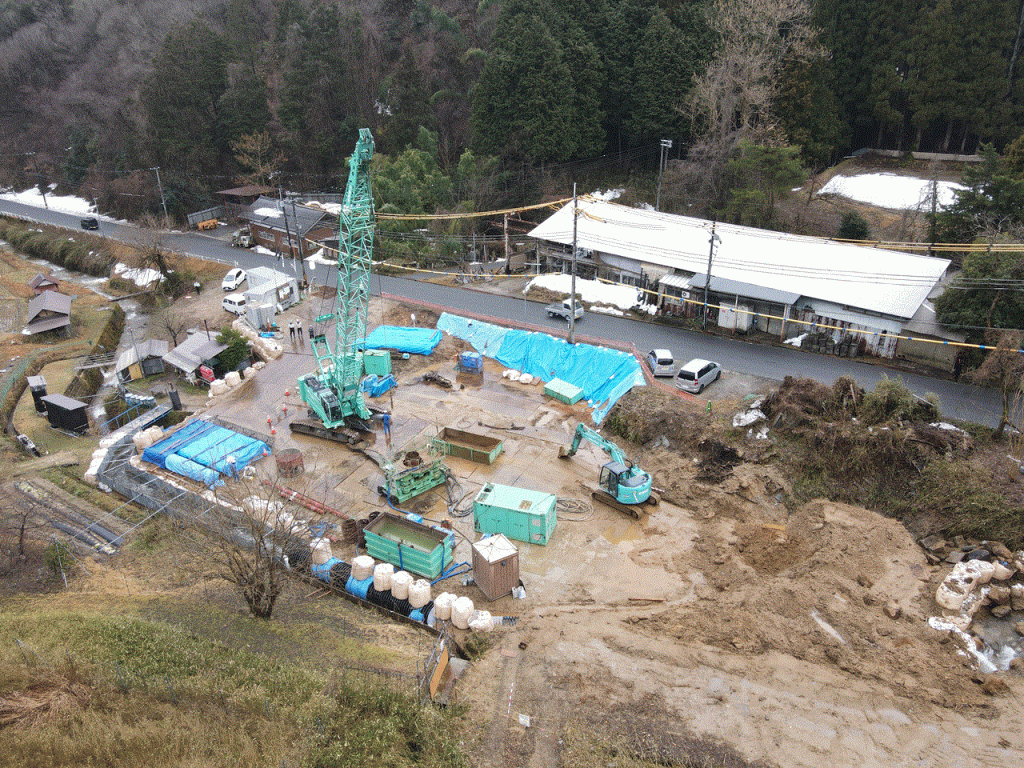 この工事は橋台を4基作る工事で、現在橋台の基礎となる場所打ち杭を
